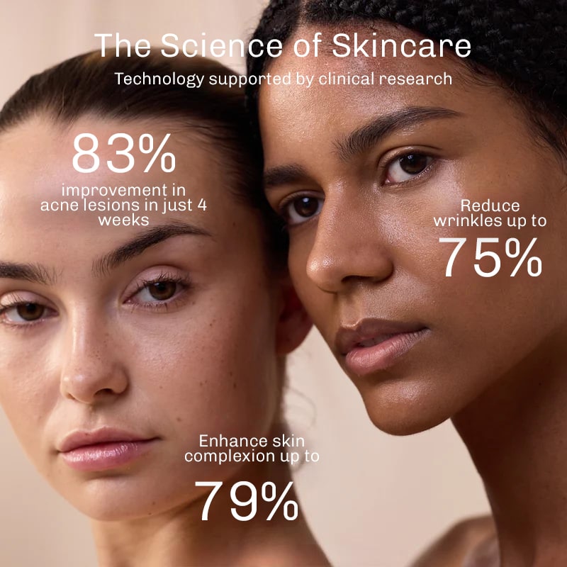 The LED light therapy mask LUMIDARK is a high-quality beauty tool for home use that targets the visible signs of skin ageing using clinically tested light waves. The integrated LEDs emit three different wavelengths – red light at 633 nm, near-infrared light at 830 nm and deep near-infrared light at 1072 nm. This combination stimulates collagen production, improves skin elasticity and reduces wrinkles. Thanks to the flexible silicone structure, the mask adapts optimally to the shape of the face and allows for even light distribution across the entire skin surface. The application is straightforward, painless and takes only 10 minutes. The scope of delivery includes the black LUMIDARK mask, a USB-C charging cable, an adjustable fastening strap for optimal support, a remote control with clip function, eye protection for more comfort during the application, as well as an additional neck piece for extended treatment of the neck and décolleté. The LUMIDARK mask is ideal for anyone who wants to improve their skin texture, reduce wrinkles and achieve a more even, radiant complexion – all without invasive procedures.