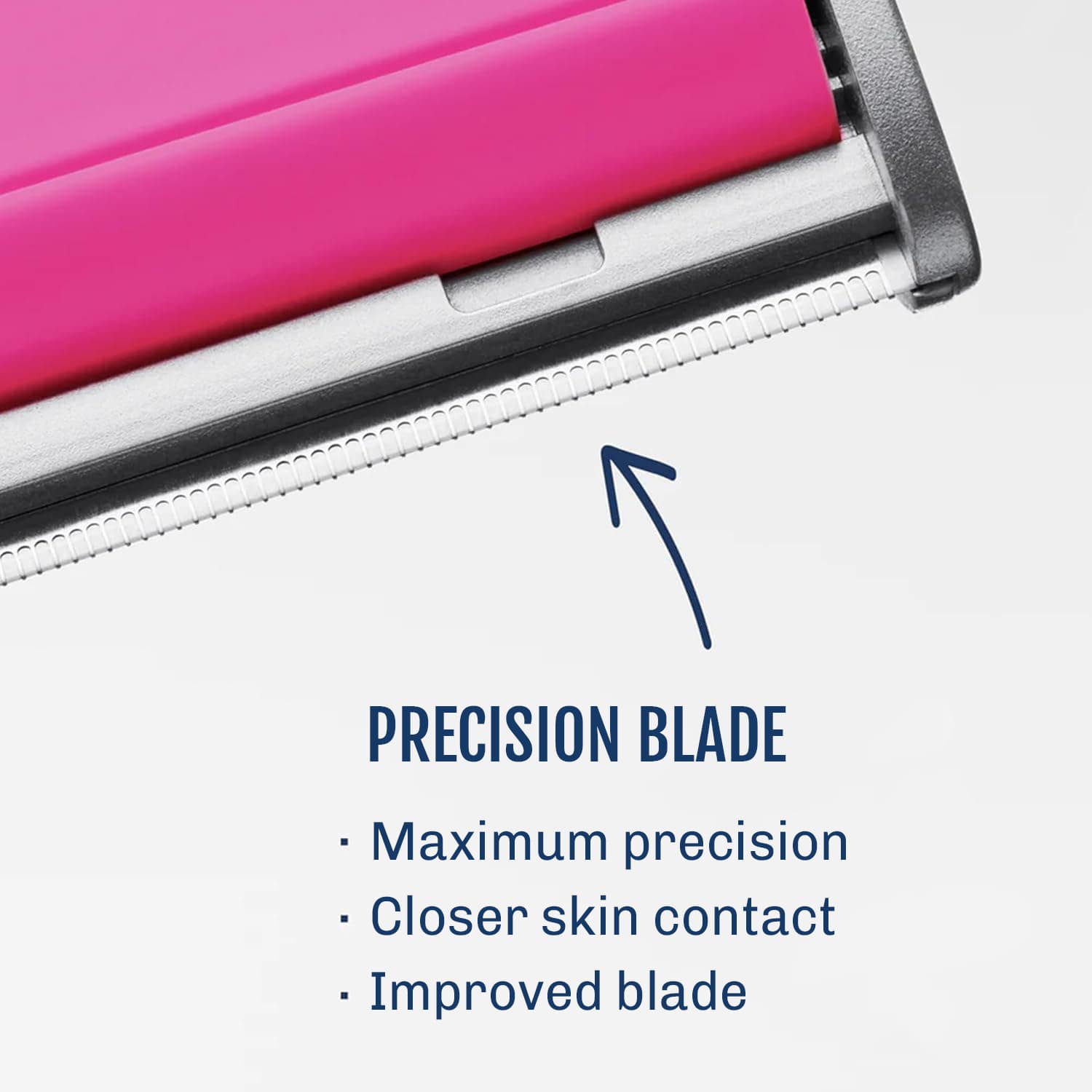The device is suitable for all skin types and skin tones, even for sensitive skin. Clinical tests have confirmed that the hair does not grow back thicker or faster after use. Thanks to the new Microfine Edgesâ„¢, every fine hair and every skin flake is removed precisely, while patented safety mechanisms ensure safe use without cuts or skin irritation.